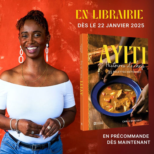 Je suis tellement fière de faire partie de cette aventure collective qui célèbre la richesse de la gastronomie haïtienne et met en lumière nos histoires, nos saveurs, notre patrimoine et notre culture. Il y a un chapitre qui présente mon parcours et mes recettes.